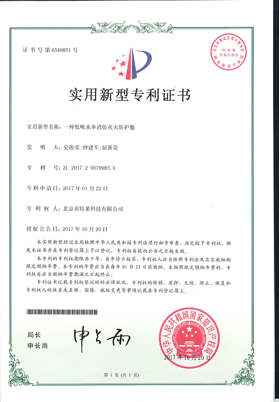 英特萊?商標(biāo)獲國(guó)家注冊(cè)